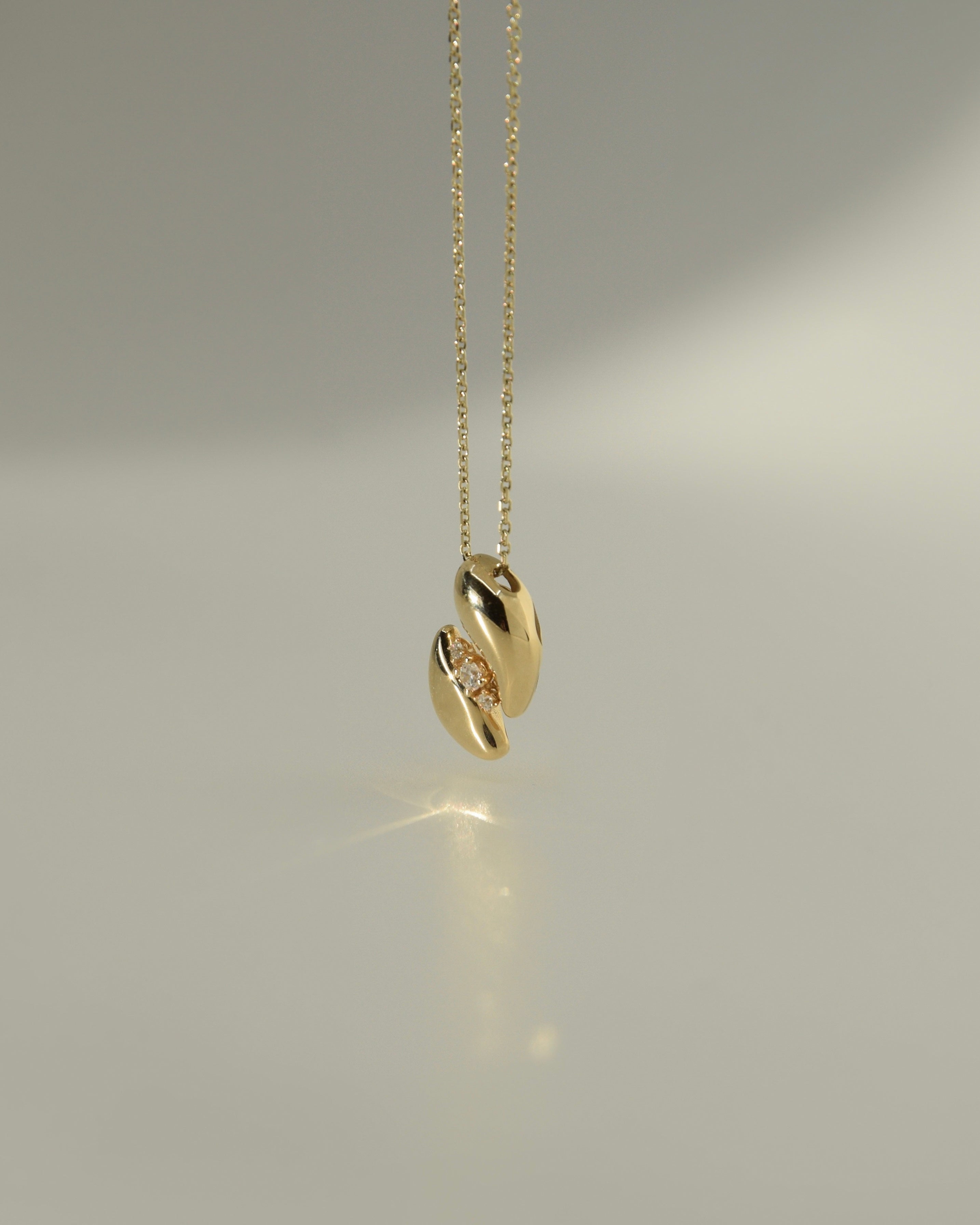The Azzura Necklace, an emotional interplay between sculpture and gold. A unique design portraying a play of shadow and light.